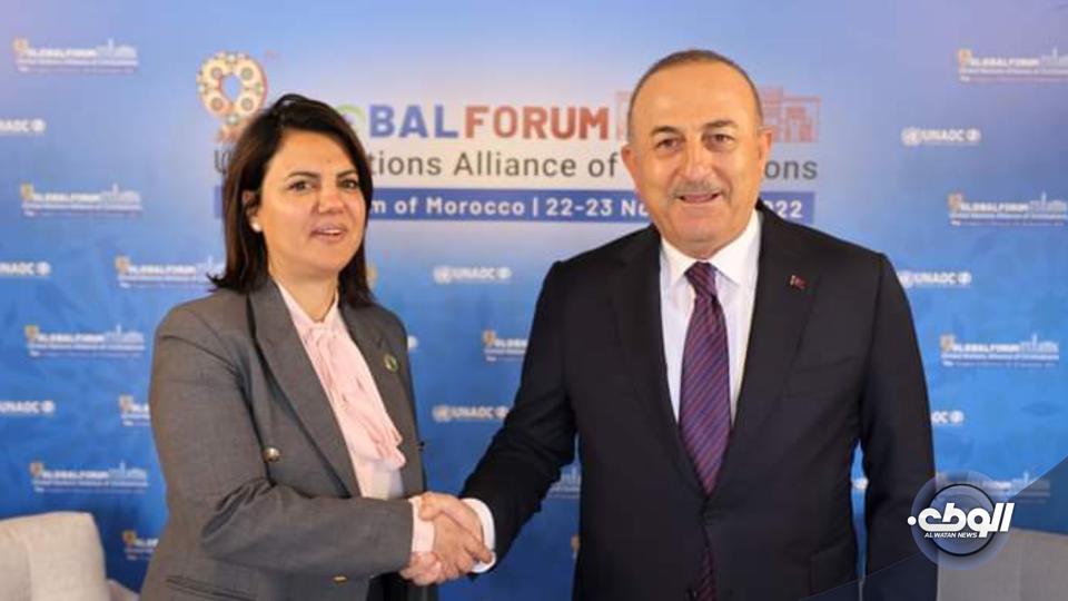 “المنقوش” تبحث سبل “الدعم” التركي لحكومتها مع وزير خارجية تركيا