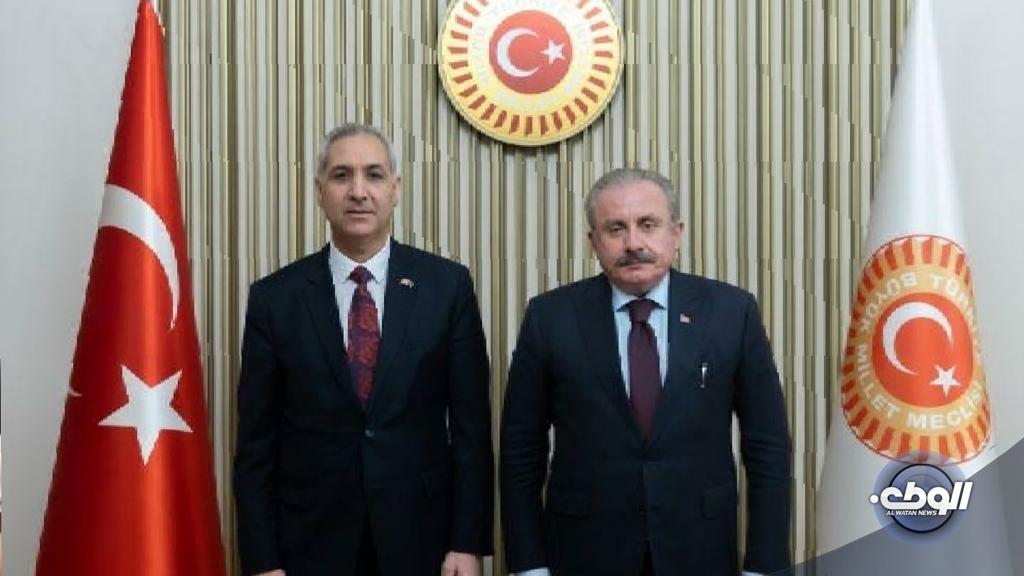 بحث سفير حكومة الدبيبة لدى تركيا مصطفى القليب الجمعة مع رئيس البرلمان التركي مصطفى شنطوب تطوير التعاون الثنائي في شتى المجالات وعلى وجه الخصوص الإسراع في توقيع اتفاقية تبادل السجناء والعمل على زيادة التعاون القضائي للمحاكم والنيابات بين البلدين.
