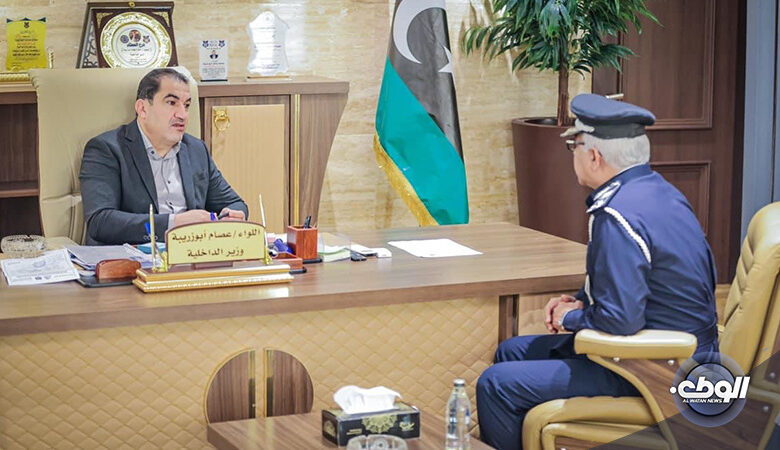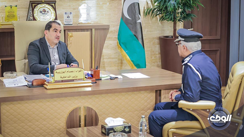 عقد وزير الداخلية بالحكومة الليبية، اللواء عصام أبوزريبة، اجتماعا مع مدير فرع الإدارة العامة للتدريب بالمنطقة الشرقية العميد خميس الوزان.