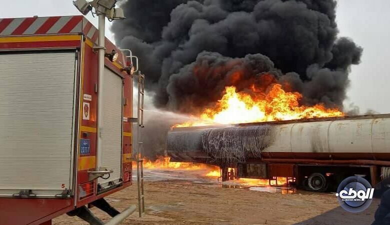 أمن صرمان : تماس كهربائي في سيارة شحن وقود قرب محطة صرمان