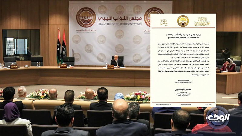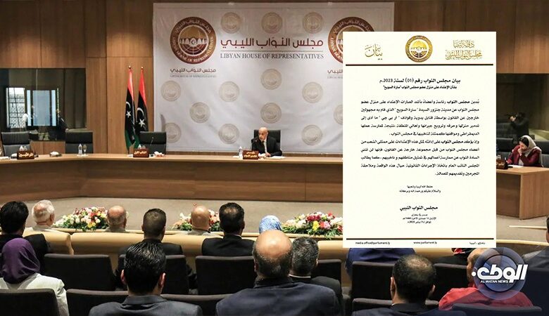 أدان مجلس النواب حادثة الاعتداء على منزل عضو المجلس النائب عن مدينة جنزور “سارة السويح”، الذي نفّذه مجهولون بواسطة قنابل يدوية وقذائف “آر بي جي”، ما أدى إلى حرق منزلها وترويع ساكني المنطقة.