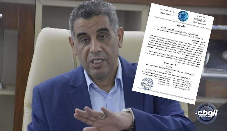 أصدر نائب رئيس الوزارء في الحكومة الليبية علي القطراني القرار رقم 12 لسنة 2023 القاضي بتشكيل لجنة برئاسة وزير الاستثمار علي السعيدي