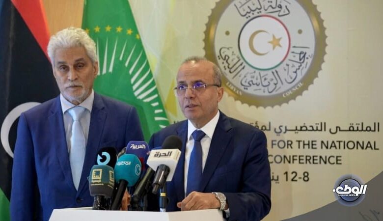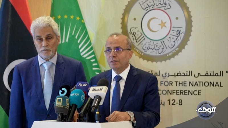 عقد النائب بالمجلس الرئاسي عبد الله اللافي، رفقة مستشار المصالحة الوطنية بالمجلس محمد اللباد، مؤتمراً صحفياً في ختام الملتقى التحضيري لمؤتمر المصالحة الوطنية مساء الخميس، مثنياً على دعم الاتحاد الإفريقي وبعثة الأمم المتحدة للدعم في ليبيا للملتقى والمشاركين.