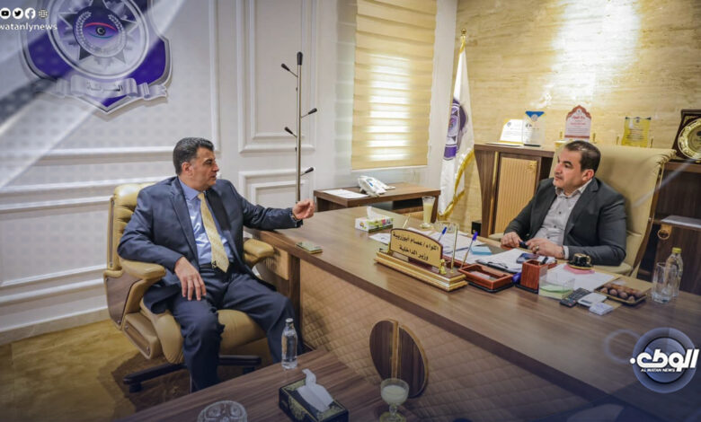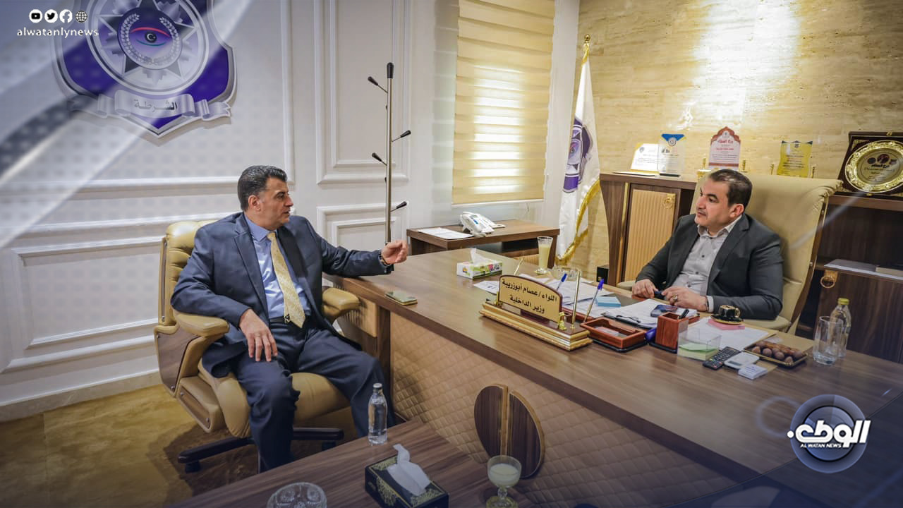 بحث وزير الداخلية في الحكومة الليبية اللواء عصام أبوزريبة مع عضو مجلس النواب عن مدينة العجيلات عادل محفوظ، الأوضاع الأمنية في المدينة.