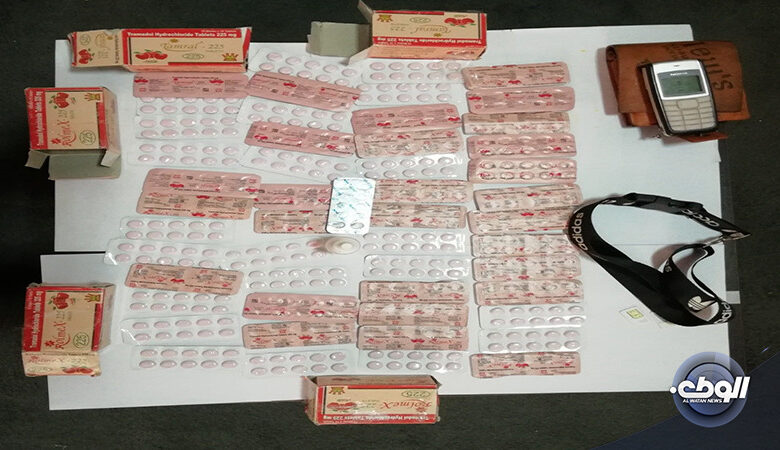 وعثر بحوزته على 300 قرص نوع “إكس تي سي”، و395 قرصا نوع “روج”، و58 قرصا نوع “آرتان”، بالإضافة إلى الحشيش.