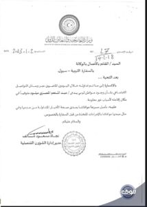 هذا وكانت مديرة إدارة الشؤون القنصلية نجاة مسعود قد وجهت كتاباً إلى القائم بالأعمال بالوكالة في السفارة الليبية في مدينة سيول، لموافاتها بمدى صحة الأخبار المتداولة حول وفاة “المصري”، وإطلاعها على الإجراءات المتخذة من قبل السفارة.