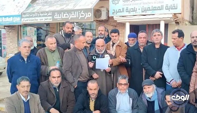 طالبت نقابة معلمي بلدية المرج في بيان لها اليوم، الإفراج فوراً عن النقيب العام لمعلمي ليبيا عبد النبي النف، خلال 24 ساعة، مشيرة إلى أنه في حال عدم الاستجابة لهذا المطلب، سيتم الإعلان عن اعتصام، وإغلاق للمدارس العامة والخاصة في البلدية.
