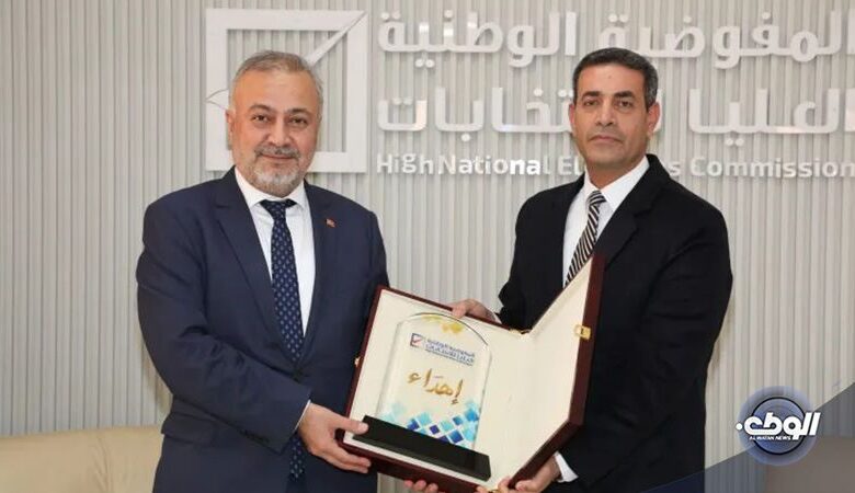 بحث رئيس مجلس المفوضية العليا للانتخابات عماد السائح مع السفير التركي لدى ليبيا كنعان يلماز سبل دعم المقترحات لإنجاز الاستحقاقات الانتخابية المرتقبة ودعم المجتمع الدولي للمفوضية من خلال الخبرات المساندة في مجال إدارة وتنفيذ الانتخابات.