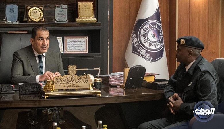 استعرض وزير الداخلية اللواء “عصام أبوزريبة” مع مدير مديرية أمن القطرون العميد “محمد إبراهيم”  الأوضاع الأمنية  والوقوف على سير العمل بالمديرية في تنفيذ المهام المكلفة بها في حفظ الأمن بالمدينة.