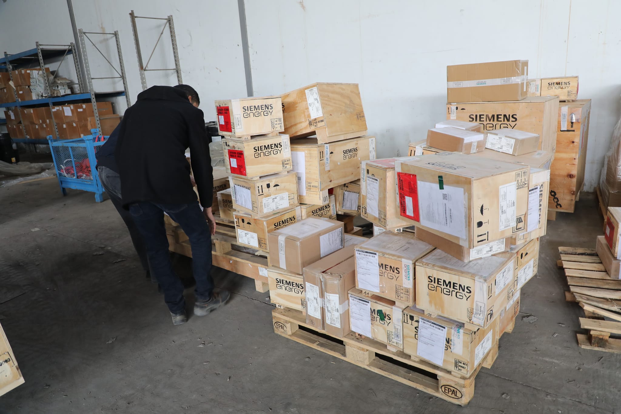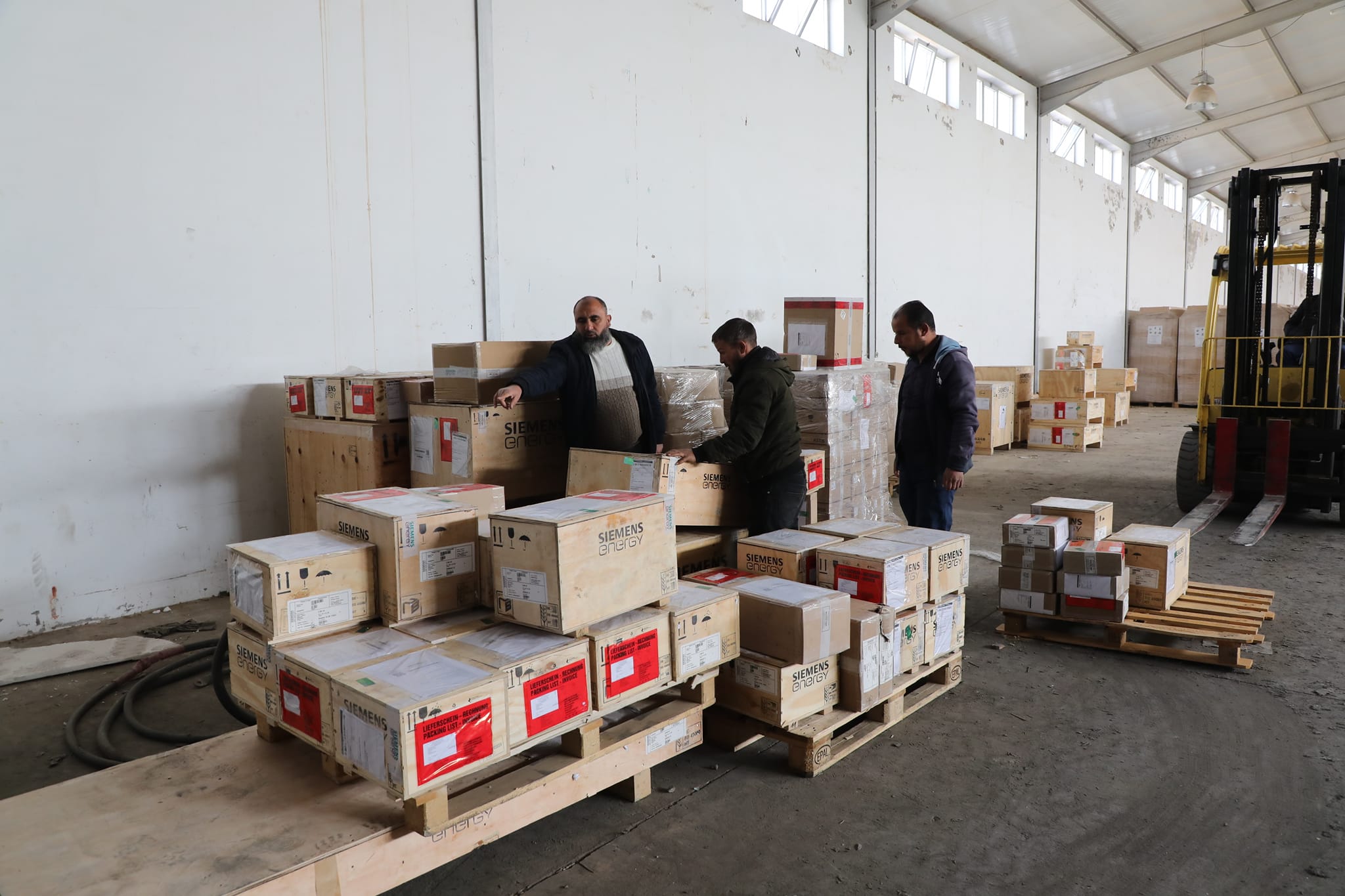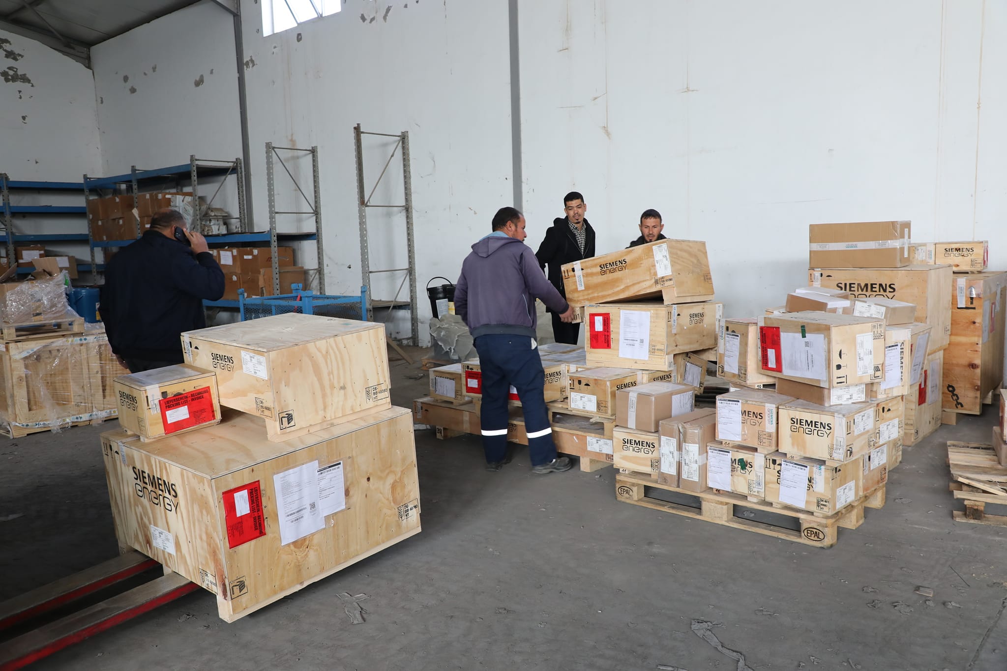 أعلنت الشركة العامة للكهرباء، نقل معدات جديدة إلى مخازنها الرئيسية موردة من شركة سيمنس الألمانية، كانت قد وصلت مطار معيتيقة الدولي خلال الأيام القليلة الماضية.