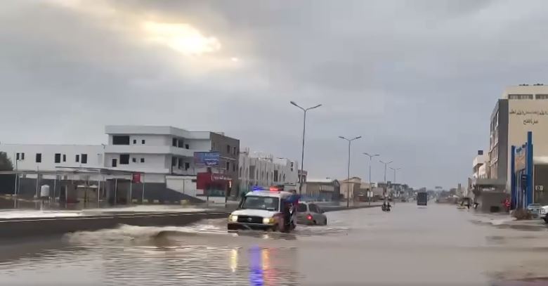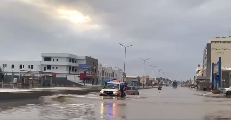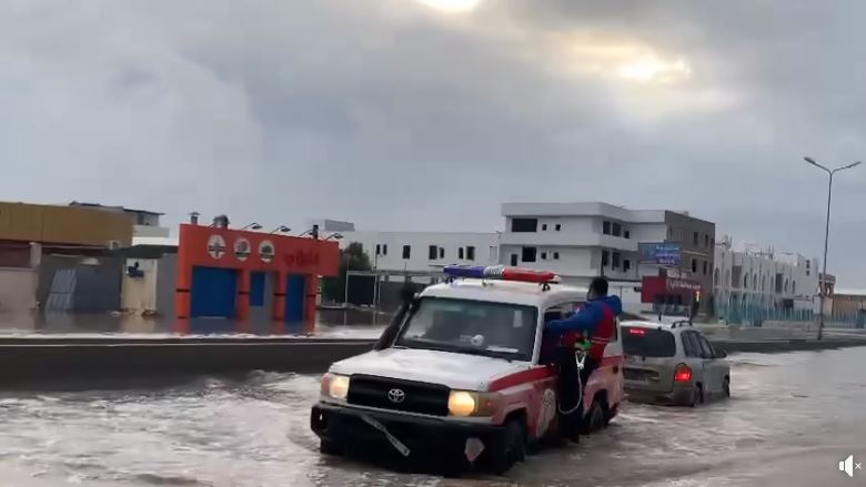 وتداول ليبيون على نطاق واسع في وسائل التواصل الاجتماعي صوار لمنطقة البيفي في طرابلس وهي تغرق بالمياه عقب سقوط الأمطار.