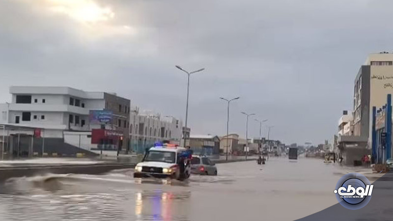 وتداول ليبيون على نطاق واسع في وسائل التواصل الاجتماعي صوار لمنطقة البيفي في طرابلس وهي تغرق بالمياه عقب سقوط الأمطار.