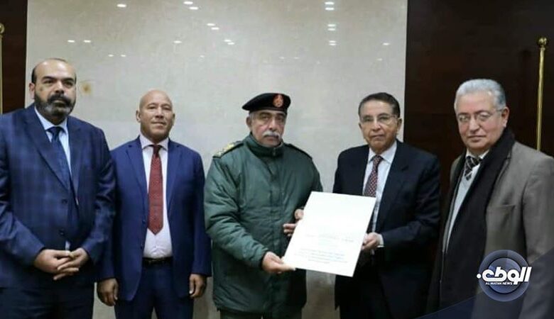 قدم وفد من قيادات حزب ليبيا الكرامة، درع الوفاء وشهادات تقدير، لرئيس الأركان العامة للقوات المسلحة الليبية، الفريق أول عبد الرازق الناظوري.