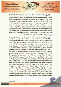 أصدر مكتب رئيس هيئة الرقابة الإدارية بيانًا يحذر فيه رئيس الحكومة منتهية الولاية عبدالحميد الدبيبة من الوقوع تحت طائلة القانون، مطالبةً إياه بسحب كتابه باقتصار المراجعة المالية على المكلفين من ديوان المحاسبة دون غيرهم من الأجهزة الرقابية لمخالفته القانون.