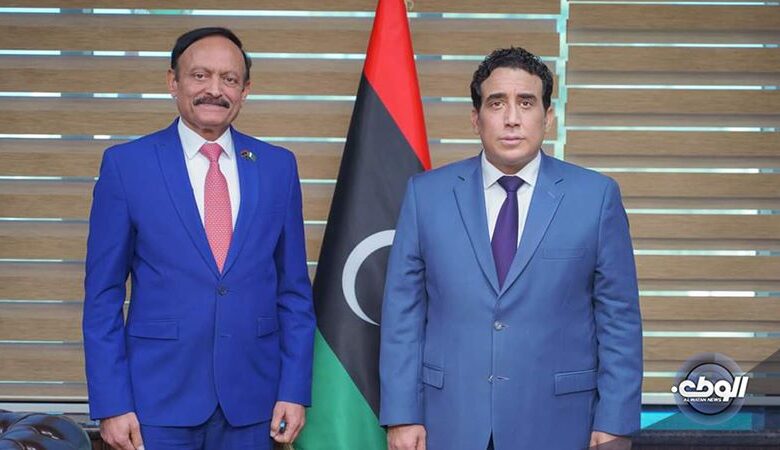 بحث رئيس المجلس الرئاسي، محمد المنفي، مع السفير الباكستاني لدى ليبيا، رشاد جاويد،بعد انتهاء مهامه سفيراً لبلاده في ليبيا، جهوده لتقوية العلاقات الليبية الباكستانية، ولدعم حكومته للمجلس الرئاسي، ولما أبداه والبعثة الدبلوماسية من تعاونٍ ودعمٍ في مواجهة التحديات السياسية والأمنية والاقتصادية.