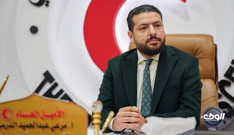 بحث الأمين العام للهلال الأحمر الليبي، مرعي الدرسي، مع المدير الإقليمي للصليب الأحمر الألماني لمنطقة الشرق الأوسط وشمال أفريقيا، أولريخ واغنر، تعزيز التعاون في مجال التدريب للحد من الكوارث.