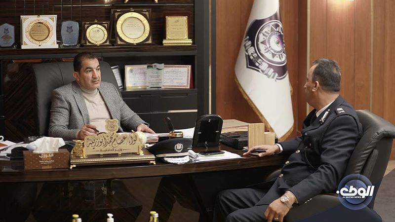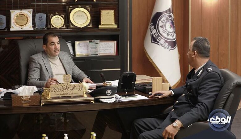 بحث وزير الداخلية بالحكومة الليبية اللواء “عصام أبوزريبة” مع مُدير إدارة الشؤون الإدارة بالوزارة اللواء “فيصل غنية” المشاكل التي تعترض سيّر العمل وتذليلها للارتقاء بِمُستوى عمل الوَزارة وَتقديم الخدمات الإدارية لِكافة مُنتسبيهَا اضافة الى مناقشة عدد من المواضيع الإدارية داخل الوزارة.