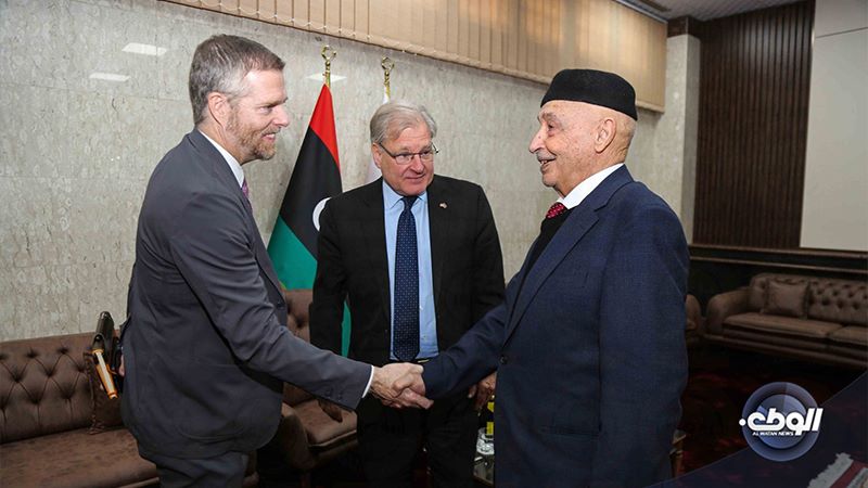 بحث رئيس مجلس النواب المستشار ” عقيلة صالح ” مع المبعوث الخاص للولايات المتحدة الأمريكية ” ريتشارد نورلاند ” و القائم بالأعمال بالسفارة ” ليزلي اوردمان ” تطورات الأوضاع في ليبيا وسُبل إجراء الانتخابات الرئاسية والبرلمانية في أقرب الآجال