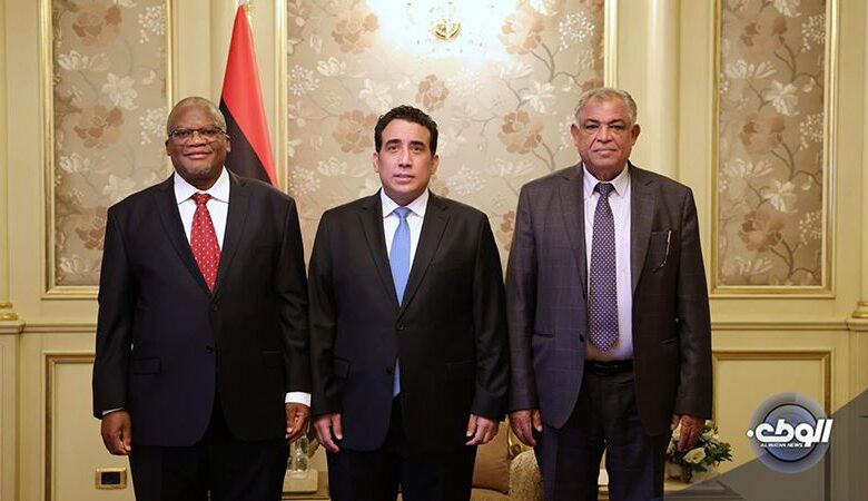 استقبل رئيس المجلس الرئاسي، محمد المنفي، اليوم الإثنين، الأمين التنفيذي لهيئة حوض ؤ “مامان نوحو”، بحضور نائب رئيس الحكومة منتهية الولاية وزير الزراعة المكلف حسين عطية.