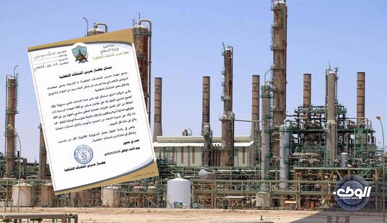 حرس المنشآت النفطية يحمل المسؤولية القانونية لمن يتسبب بإغلاق منشآت النفط