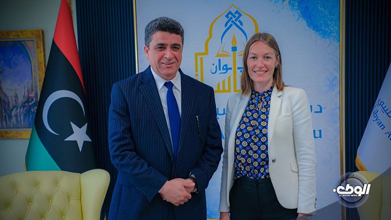 التقى رئيس دِيوان المحاسبة خالد شكشك، القائمة بأعمال السفارة البريطانية في ليبيا كاثرين وايلد، والوفد المرافق لها، بحضور المعنيين من الإدارات المختصة في الديوان.