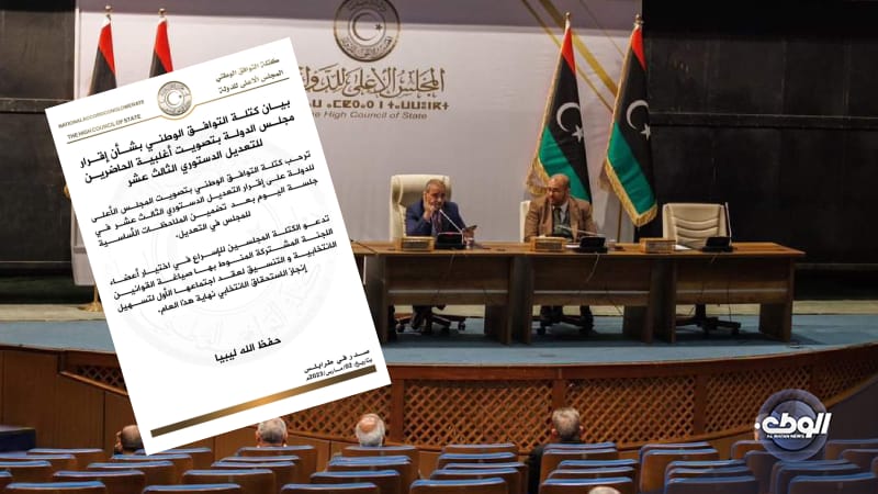 أصدرت كتلة التوافق الوطني، بيانا بشأن إقرار مجلس الدولة بتصويت أغلبية الحاضرين للتعديل الدستوري الثالث عشر.