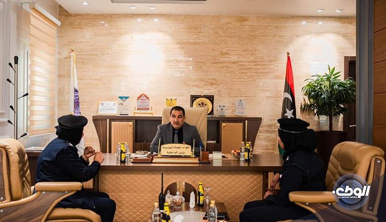 اجتمع وزير الداخلية اللواء “عصام أبوزريبة” برئيس قسم حماية الأسرة والطفل بمديرية أمن بنغازي عقيد “مرعية الفرجاني”.