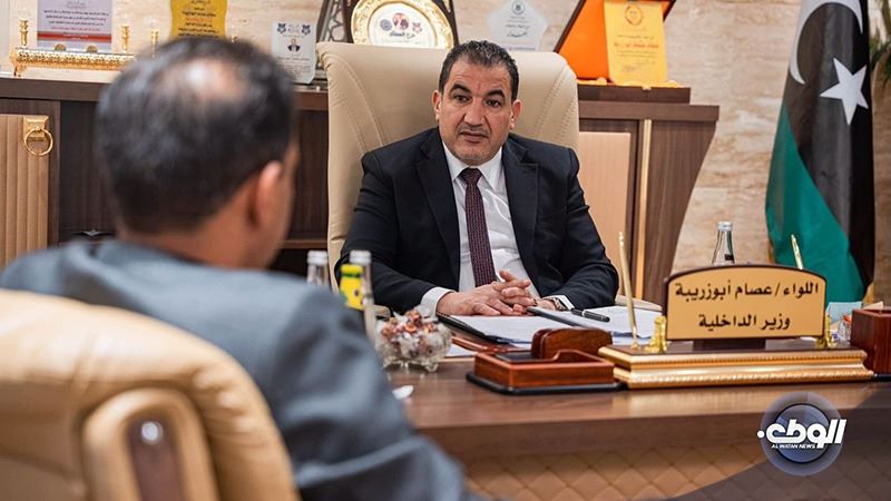 بحث وزير الداخلية بالحكومة الليبية اللواء عصام أبوزريبة، مع مدير مديرية أمن منفذ مطار بنينا الدولي اللواء سعد العكوكي