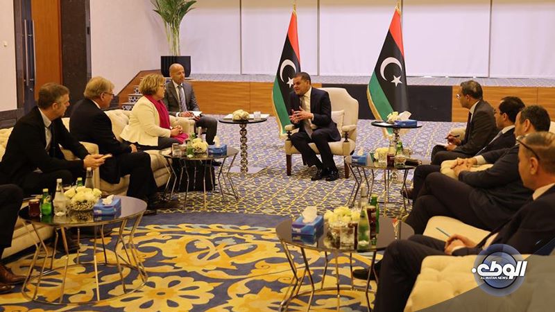 بحث رئيس الحكومة المنتهية عبد الحميد الدبيبة مع مساعدة وزير الخارجية الأمريكية “باربرا ليف” التطورات السياسية في ليبيا وأهمية توحيد الجهود الدولية والمحلية