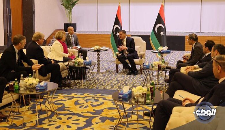بحث رئيس الحكومة المنتهية عبد الحميد الدبيبة مع مساعدة وزير الخارجية الأمريكية “باربرا ليف” التطورات السياسية في ليبيا وأهمية توحيد الجهود الدولية والمحلية