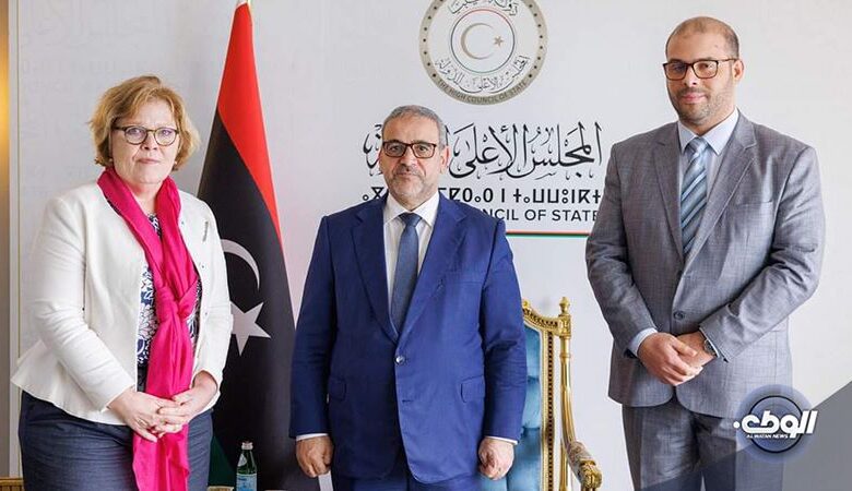 المشري يناقش آخر المستجدات في الساحة الليبية مع وفد رسمي أمريكي
