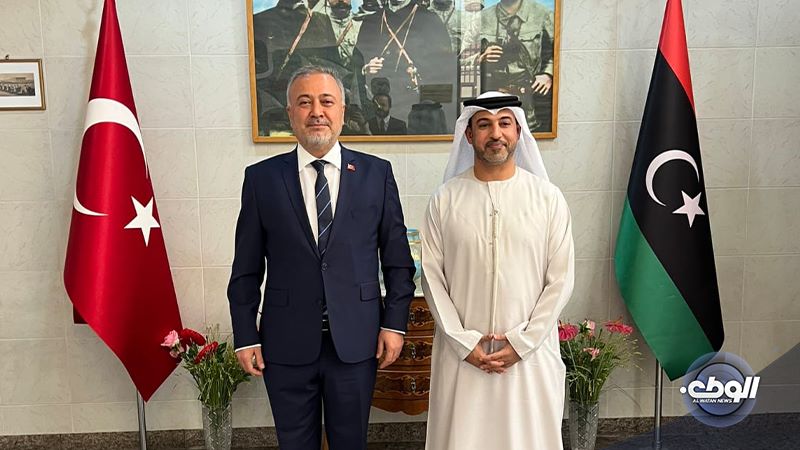 بحث السفير الإماراتي لدى ليبيا، محمد علي الشامسي، مع سفير تركيا لدى ليبيا، كنعان يلماز، سبل تعزيز التعاون الثنائي بين البلدين.