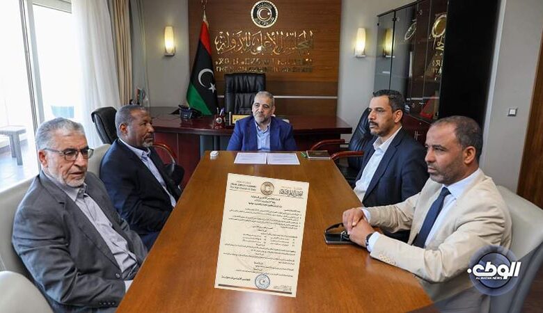 بحث رئيس مجلس الدولة، خالد المشري، خلال اجتماع مع لجنة إعداد مشروعات قوانين الاستفتاء والانتخابات.