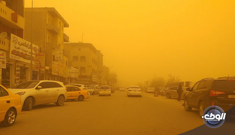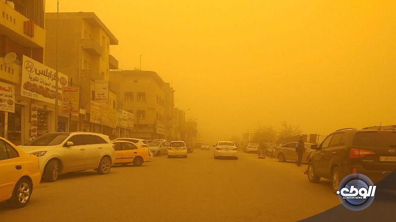 الرياح: جنوبية شرقية فجنوبية معتدلة إلى نشطة السرعة مما تسبب في إثارة الأتربة والغبار.