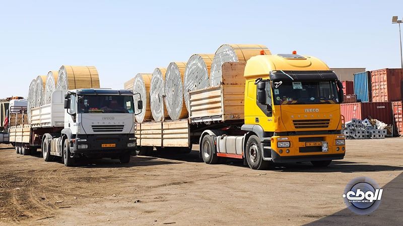 استقبلت مخازن الشركة العامة للكهرباء اليوم الخميس سبع شاحنات على متنها شحنة كابلات خاصة بشبكة الجهد المتوسط موردة من مصر.