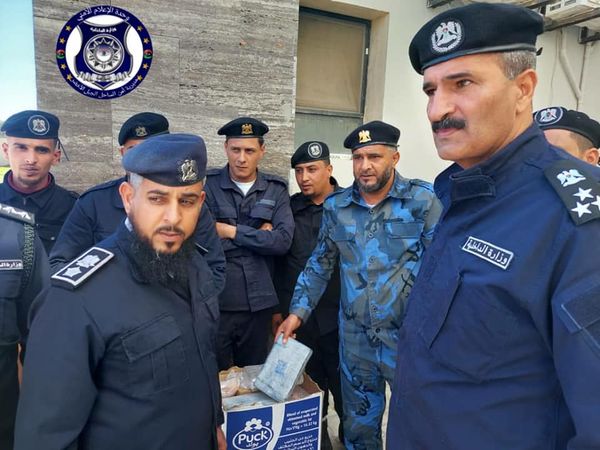 وفي السياق، قام مدير أمن الساحل العميد مفتاح حميد وبرفقتة رئيس قسم النجدة وبعض من ضباط المديرية بتسليم المخدرات التي تم العثور عليها على شاطئ البحر من قبل أعضاء قسم النجدة تقدر بحوالي 100 كيلو لمكتب وكيل وزارة الداخلية فرج أقعيم.