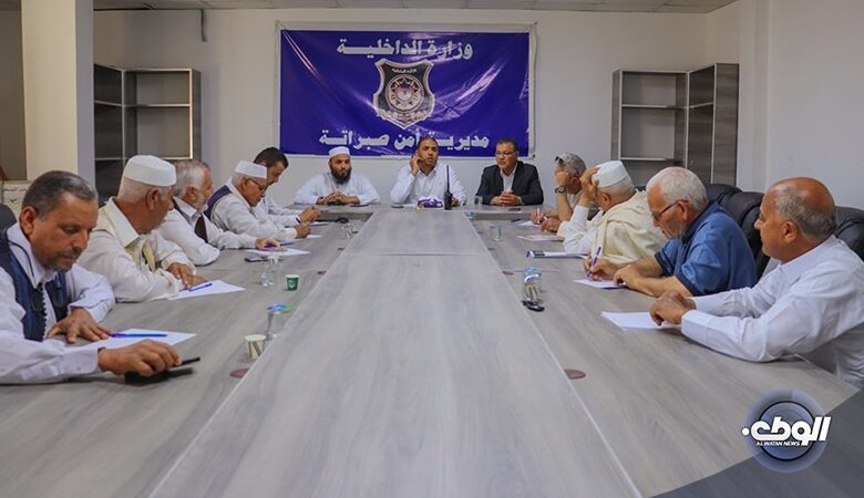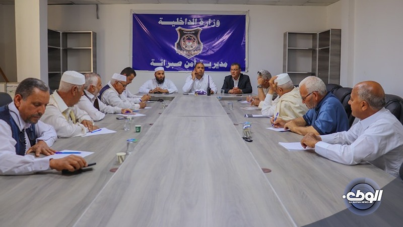 عقد مدير أمن صبراتة اجتماعا برئيس مكتب الأوقاف وعدد من المسؤولين لمناقشة الانقسام بشأن تحديد موعد عيد الفطر في عموم ليبيا، وفق بيان للمديرية.
