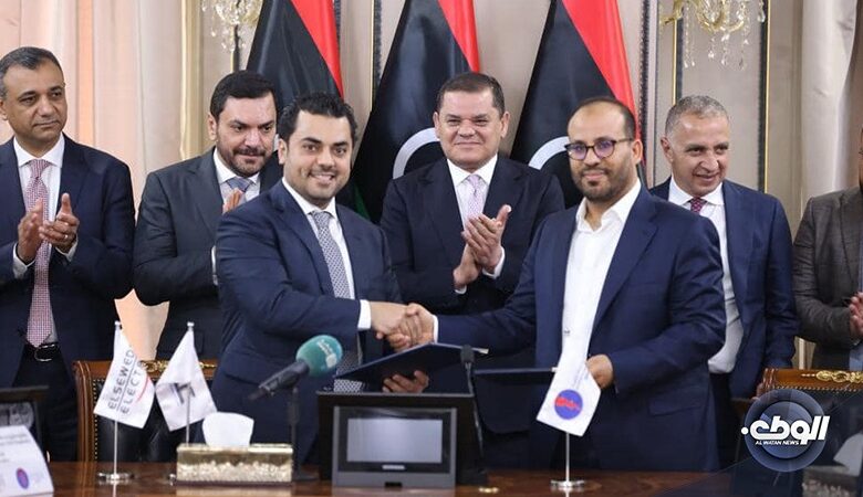 قام رئيس مجلس إدارة الشركة العامة للكهرباء محمد المشاي ظهر اليوم بديوان رئاسة الوزراء منتهية الولاية بالتوقيع على مشروع إنشاء محطة زليتن الغازية الموردة من شركة “سيمينس” الألمانية و تنفيذ إتلاف شركتي “اورباكون ” لتجارة والمقاولات و“السويدي ايلكترك “، وذلك بحضور رئيس الحكومة المنتهية عبدالحميد الدبيبة.