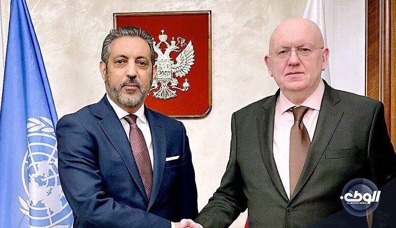 بحث سفير ومندوب ليبيا لدى الأمم المتحدة، طاهر السني، مع مندوب روسيا لدى الأمم المتحدة، فاسيلي نبينزيا، تطورات الوضع في ليبيا، والتحديات التي تواجه المسار السياسي والعملية الانتخابية.
