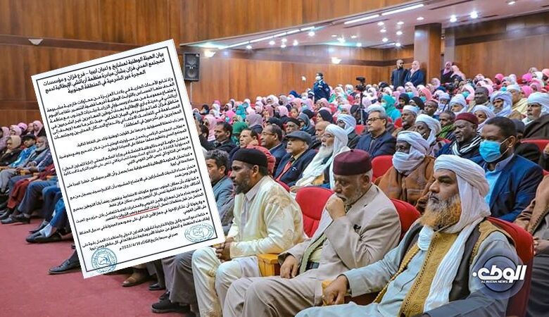 وأكدوا أن سكان الجنوب بجميع مكوناته الاجتماعية يرفضون رفضا باتاً التوطين بجميع أشكاله ، وإن هذه القضية تمس كل الليبيين وليس سكان فزان فقط.