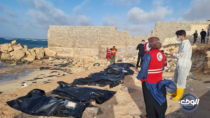 الهلال الأحمر فرع صبراتة ينتشل 17 جثة بالقرب من شاطئ المدينة
