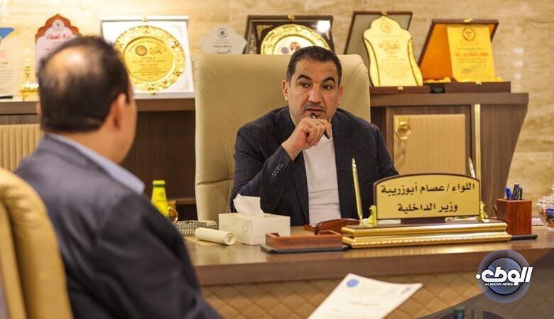 استعرض وَزير الداخلية في الحكومة الليبية اللواء “عصام ابوزريبة” مع رَئيس ديوان الوَزارة بِالمنطقة الشرقية اللواء “جمال المسماري” الأعمال المنجزة من قبل الديوان خلال الفترة الماضية، وكذلك مناقشة خطة العمل العامة بِالإضافة إلى الأوضاع الأمنية وَالمشاكل التي تُواجهرجال الأمن وَالأجهزة الأمنية.