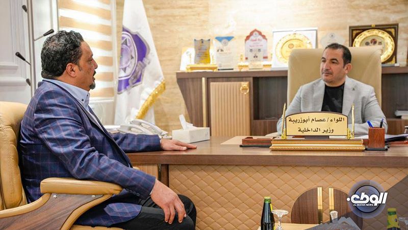 اجتمع وزير الداخلية في الحكومة الليبية، اللواء “عصام ابوزريبة” بمدير الإدارة العامة للدعم المركزي بالمنطقة الشرقية اللواء “صلاح الخفيفي”، بديوان الوزارة في بنغازي اليوم الأربعاء.