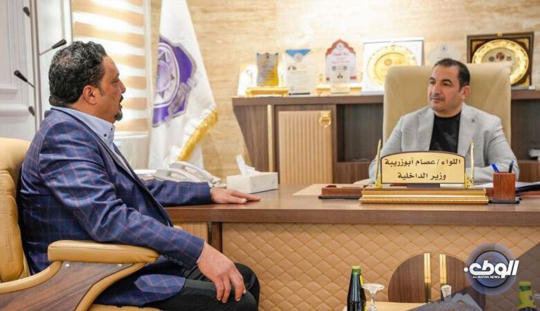 اجتمع وزير الداخلية في الحكومة الليبية، اللواء “عصام ابوزريبة” بمدير الإدارة العامة للدعم المركزي بالمنطقة الشرقية اللواء “صلاح الخفيفي”، بديوان الوزارة في بنغازي اليوم الأربعاء.