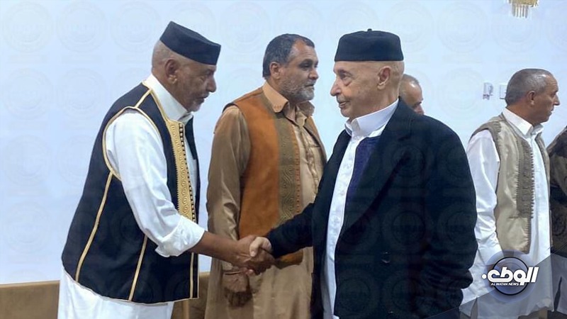 وفي ختام اللقاء كرم وفد قبيلة النوايل المستشار “عقيلة صالح ” بدرع؛ تقديرًا لمواقفه الوطنية.
