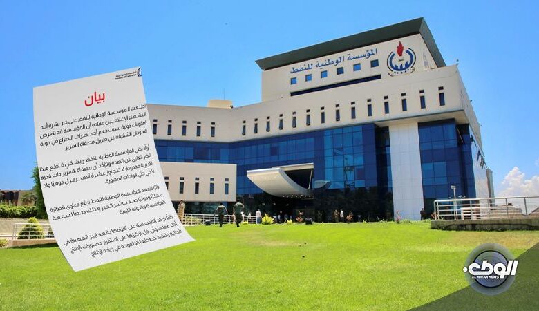 قالت المؤسسة الوطنية للنفط إنها اطلعت على خبر نشره أحد الإعلاميين يفيد أن المؤسسة قد تتعرض لعقوبات دولية بسبب دعم أحد أطراف الصراع في دولة السودان الشقيقة عن طريق مصفاة السرير.