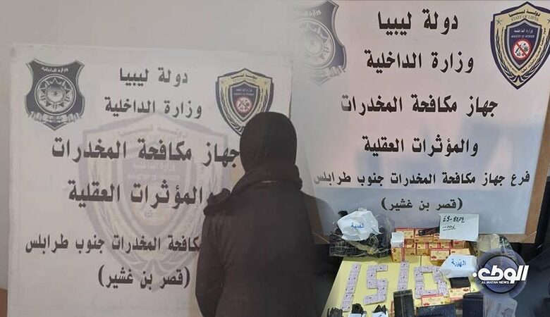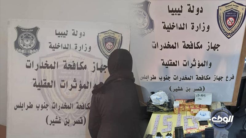 داهم أفراد جهاز مكافحة المخدرات والمؤثرت العقلية فرع جنوب طرابلس وكرا للاتجار بالمخدرات في منطقة القيوا داخل نطاق منطقة النواحي الأربع.