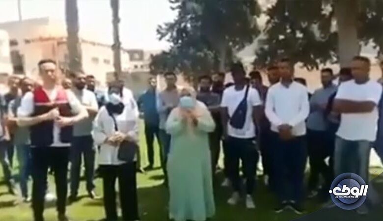 نفذت العناصر الطبيبة العاملة بجائحة كورونا وقفة احتجاجية أمام مقر حكومة الدبيبة منتهية الولاية بطريق السكة في طرابلس.