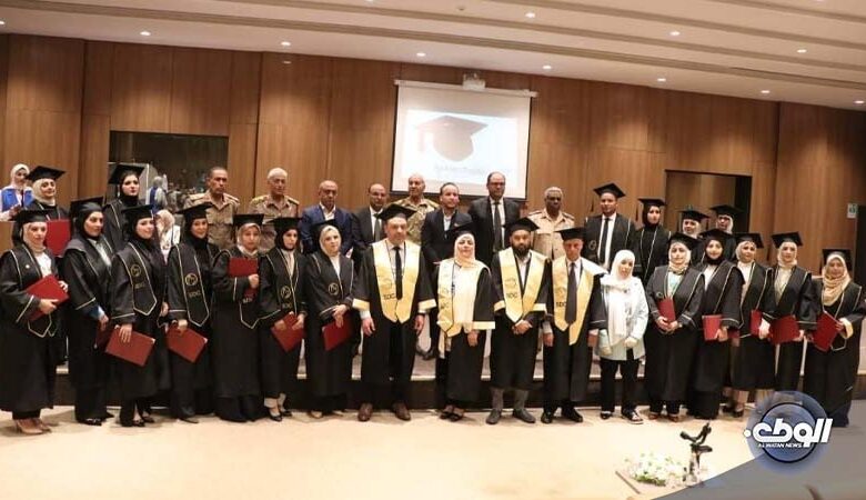 أقيم حفل تخريج الدفعة الاولى من الدبلوم التخصصي في علاج الجذور والعلاج التحفظي، بمدينة بنغازي، بحضور وزير الصحة الدكتورعثمان عبد الجليل وعدد من النواب وعميد بلدية بنغازي وعدد من الشخصيات الاعتبارية والعسكرية والأمنية.
