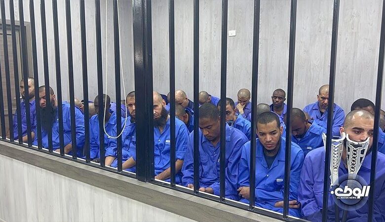 وتابعت ” تم الحكم على المتهمين الذين تقل أعمارهم عن 18 عاما من غير الليبيين بالسجن 10 سنوات وإبعادهم عن البلاد بعد تنفيذ العقوبة”.